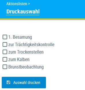 Diese Seite ermöglicht die Ausgabe von Druckreports zu den verschiedenen Aktionslisten.