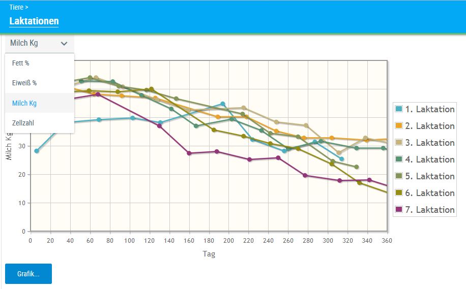 Durch Klicken auf diesen Button öffnet sich eine interaktive Grafik mit den Ergebnissen der Kontrollen der einzelnen Laktationen.
